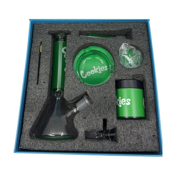 The premium Cookies Combo Kit is crafted for smokers who value both standout style and everyday functionality. This all-in-one set includes a high-quality water pipe, a durable bowl, a sleek ashtray, and additional essential accessories designed to elevate the smoking experience. Blending practicality with the iconic Cookies aesthetic, this kit delivers a clean, smooth session while keeping everything you need in one convenient package, making it an ideal choice for true enthusiasts.